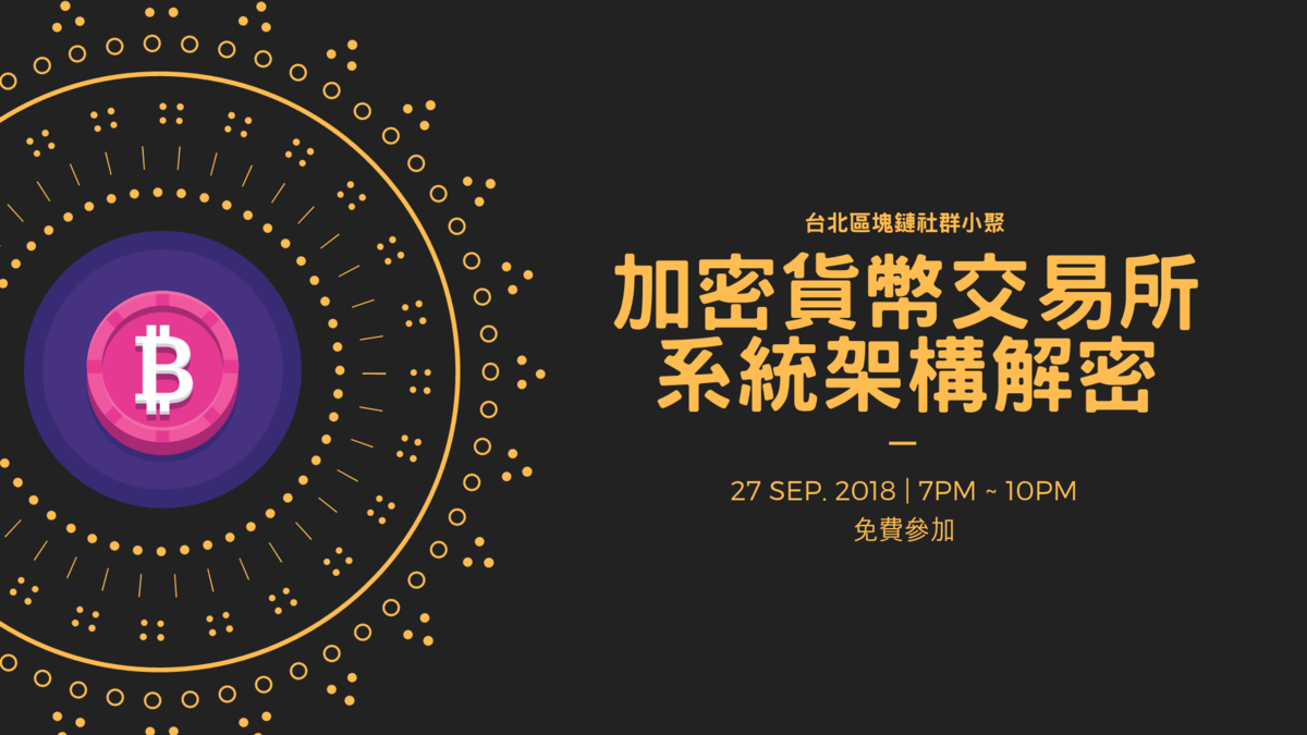 而本月最後一次聚會我們將為大家解密加密貨幣交易所的系統,從功能設計到架構規劃及開源的交易所專案介紹。